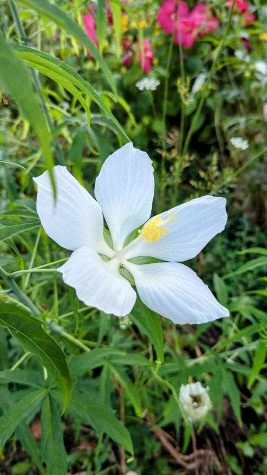Hibiscus stacojiu alb (Hibiscus coccineus) (stoc epuizat, disponibil din nou în primăvară 2026)