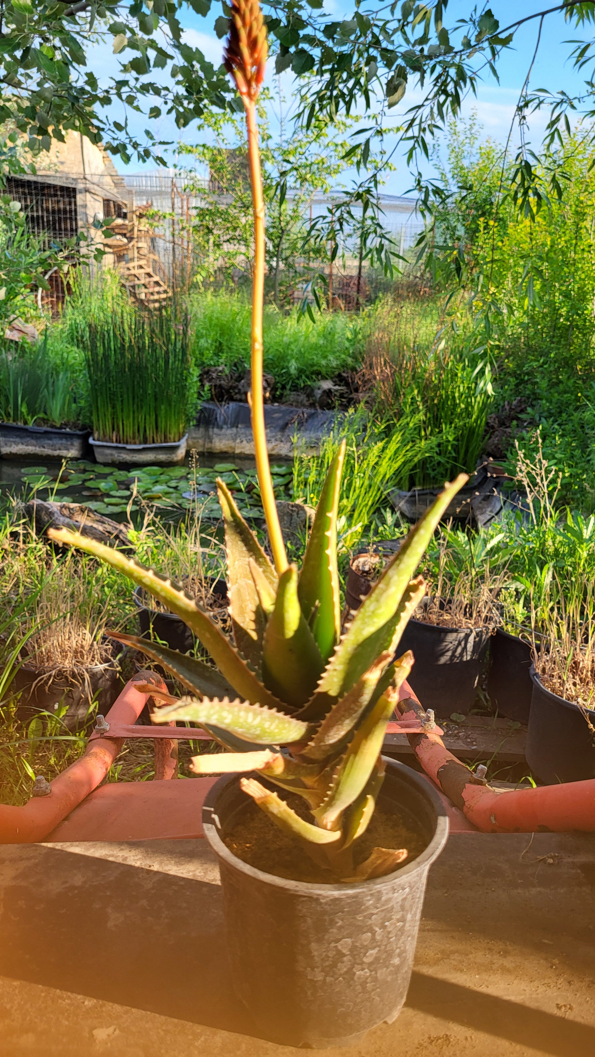 Aloe × nobilis este o plantă suculentă perenă, apreciată atât pentru proprietățile sale medicinale, cât și pentru aspectul său ornamental. Originară din sudul Africii, această aloe se distinge prin frunzele sale cărnoase, verzi, și margini zimțate, care formează tufe mari, putând atinge până la 2-3 metri înălțime. Florile sale roșii sau portocalii apar iarna, aducând un strop de culoare în casa ta.