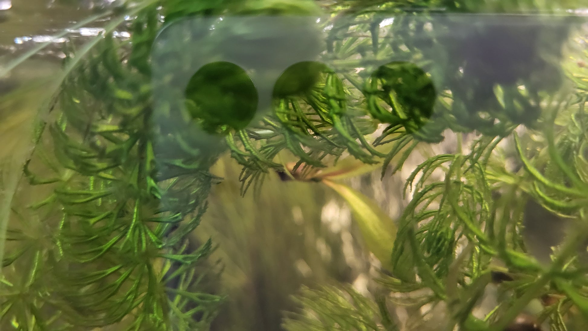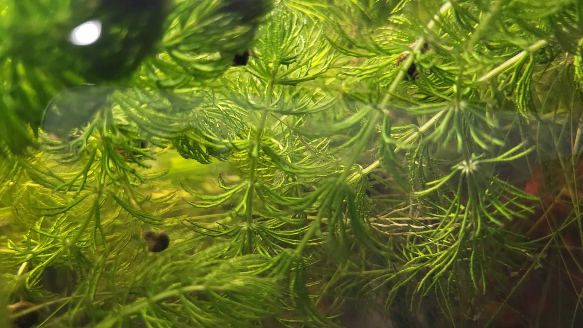 - Aspect: Nu are rădăcini adevărate; se fixează uneori în substrat prin fragmente, dar de cele mai multe ori plutește liber în apă.