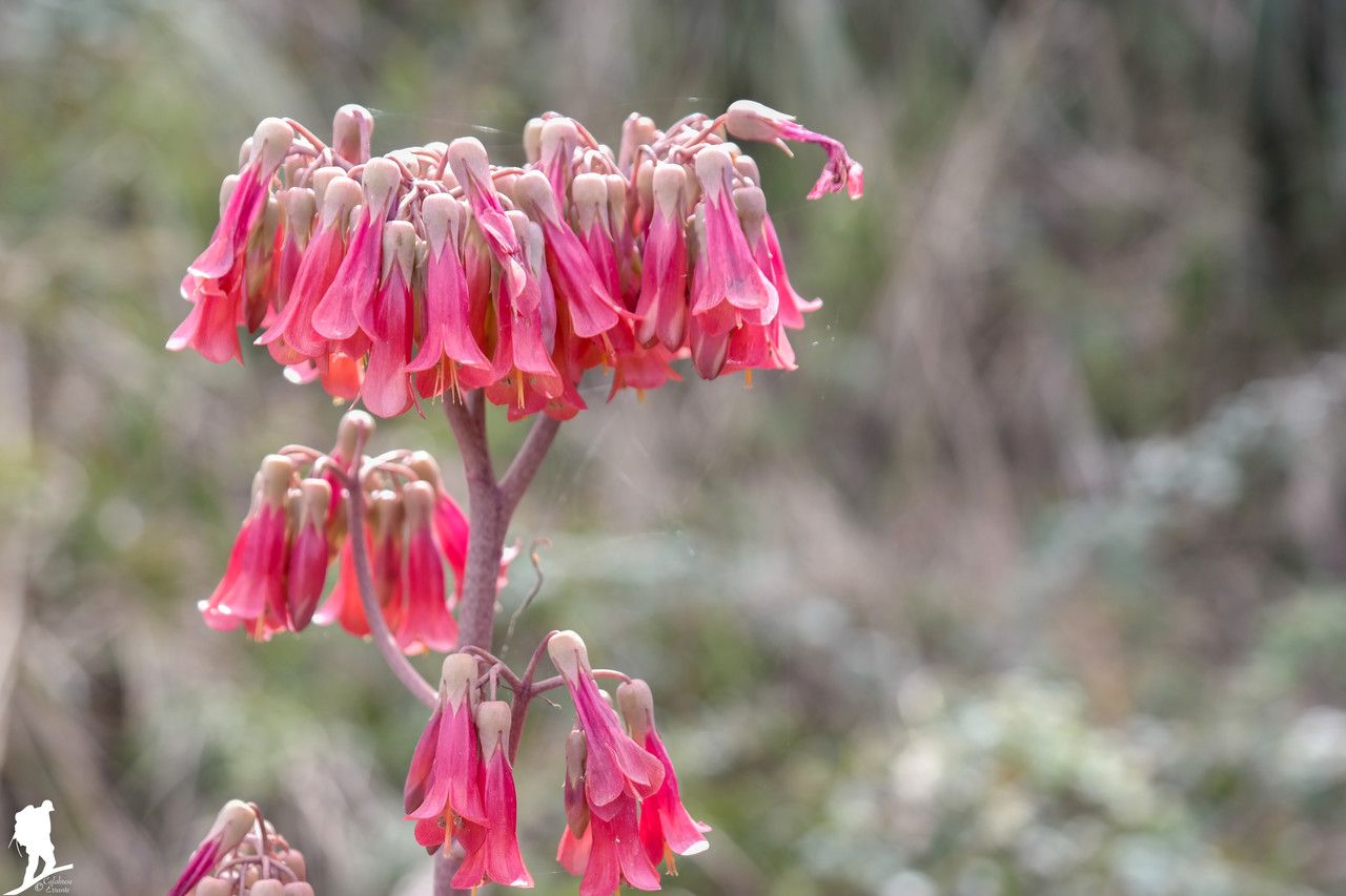 - Flori: apar de obicei iarna, în vârfurile tulpinilor, grupate în ciorchini; sunt tubulare, portocalii-roșcate, atârnate, decorative și atractive pentru polenizatori.